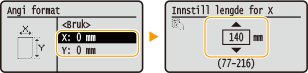 Velg <X> eller <Y>, og skriv inn lengden på hver side ved bruk av talltastene.