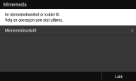 Hvis <Skjerm når minnemed. tilkob.> er stilt inn på <På>, vises de tilgjengelige handlingene når du setter inn en USB-minneenhet mens skjermbildet Hjem vises. <Skjerm når minnemed. tilkob.> ![]() Ettersom skjermbildene ikke vises i hvilemodus, må du gå ut av hvilemodus før du setter inn en USB-minneenhet. |