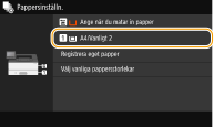 Ange pappersformat och typ i papperslådan