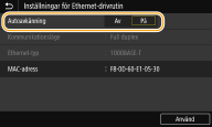 Välj om Ethernet-inställningarna ska konfigureras automatiskt eller manuellt.