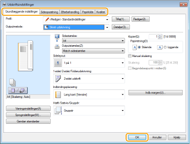 Angiv udskrivningsindstillingerne efter behov, og klik på [OK].