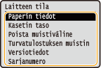 <Poista muistiväline>Käytetään USB-muistilaitteen turvalliseen poistamiseen. Näytetään vain, kun laitteeseen on kytketty USB-muistilaite.