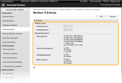 : ei käytettävissäAlgoritmi | TLS-versio | |||