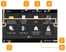 Prima para verificar o estado da impressão, para ver o histórico de utilização ou para ver as definições de rede (por exemplo, o endereço IP da máquina). Também pode verificar o estado da máquina (por exemplo, a quantidade restante de papel e a quantidade restante nos cartuchos de toner) ou a ocorrência de erros. Ecrã <Monitor de Status>