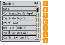 O ícone de LAN com fios é exibido ao ligar-se a uma LAN com fios, ou o ícone de LAN sem fios é exibido ao ligar-se a uma LAN sem fios. Carregue neste ícone para definir as configurações de LAN com/sem fios. <Rede>