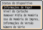 <Remover Mídia de Memória>Utilizado para remover com segurança um dispositivo de memória USB. Este item só aparece quando existe um dispositivo de memória USB ligado à máquina.