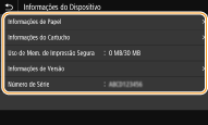 <Uso de Mem. de Impressão Segura>Apresenta a quantidade de memória que está a ser utilizada para guardar dados de documentos protegidos.