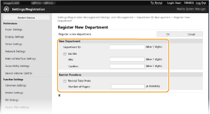 Selecione a caixa de verificação [Gerenciamento de ID de Departamento].
