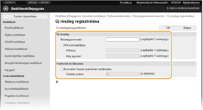 Jegyezzen be részlegazonosítókat és a hozzájuk tartozó PIN-kódokat. Regisztrálja az összes kezelni kívánt részlegazonosítót.