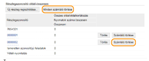 Ha szeretné nullázni egy azonosító nyilvántartását, akkor a [Részlegazonosító] alatt kattintson a megfelelő szöveges hivatkozásra, majd kattintson a [Számláló törlése]  [OK] lehetőségre. a minden részlegazonosító nyilvántartását nullázni szeretné, akkor a [Minden számláló törlése]  [OK] lehetőségre kattintson.