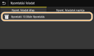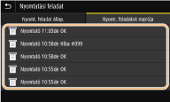 Válassza ki azt a dokumentumot, amelynek a naplóját ellenőrizni kívánja.Ha a dokumentum nyomtatása sikeres volt, akkor az <OK> felirat jelenik meg, ha viszont megszakítás vagy valamilyen hiba miatt sikertelen volt, akkor a <Hiba> jelzés látható.