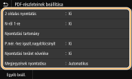 PDF-fájl esetén 9 vagy 16 oldalnyi képadatot nyomtathat egy papírlap egy oldalára az <N-ről 1-re> lehetőség <PDF részl.-nek beáll.> pontban történő kiválasztásával.