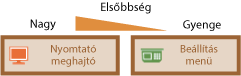 A beállítások prioritásaHa egy nyomtatási beállítás a nyomtató-illesztőprogramban és a készülék kezelőpanelén is meg van adva, akkor az illesztőprogramban megadott beállítás felülírja a kezelőpanel beállítását. A kezelőpanel beállításai csak bizonyos speciális esetekben lesznek érvényesek, például amikor UNIX vagy más olyan operációs rendszerről végez PS/PCL nyomtatást, amelyekhez a készüléknek nincs illesztőprogramja.