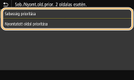 Válasszon: <Sebesség prioritása> vagy <Nyomtatott oldal prioritása>