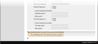 A [Hitelesítés Be/Titkosítás Be], [Hitelesítés Be/Titkosítás Ki] és [Hitelesítés Ki/Titkosítás Ki] beállítással adja meg a hitelesítési és titkosítási beállítások kívánt kombinációját.