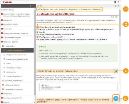 Kliknij, aby ustawić parametry określające sposób wyświetlania programu Podręcznik użytkownika, np. rozmiar znaków lub układ.