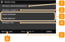 Możesz określić czy wyświetlać adres IP na ekranie <Monitor stanu> ustawiając <Wyświetl adres IP>.
