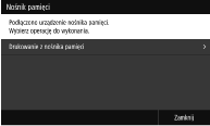 Jeśli <Ekran po podł. noś. pam.> ustawiony jest na <Włącz>, dostępne działania są wyświetlane gdy wkładasz urządzenie pamięci masowej USB podczas wyświetlania ekranu Główny. <Ekran po podł. noś. pam.>
