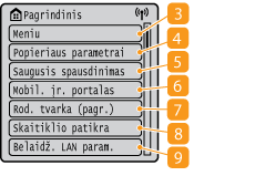 Laidinio LAN piktograma rodoma prisijungus prie laidinio LAN, o belaidžio LAN piktograma – prisijungus prie belaidžio LAN. Paspauskite piktogramą, norėdami konfigūruoti laidinio / belaidžio LAN parametrus. <Tinklas>