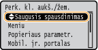 Ilgas <Kairėn> arba <Perk. į deš> palietimas nepertraukiamai perkelia pasirinktą mygtuką.