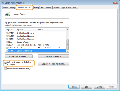Bir ağ bağlantısı kullanıyorsanız ve makinenin IP adresini değiştirdiysenizYeni bir bağlantı noktası eklemeniz gerekir. Yazıcı Bağlantı Noktalarını Yapılandırma
