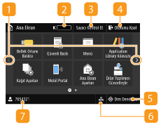 Yazdırma durumunu kontrol etmek, kullanım geçmişini görüntülemek veya makinenin IP adresi gibi ağ ayarlarını görüntülemek için basın. Kalan kağıt miktarı ve kartuşta kalan toner miktarı gibi makine durumunu veya bir hata oluşup oluşmadığını da kontrol edebilirsiniz. <Durum Denetleme> Ekranı