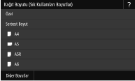Sık kullandığınız kağıt boyutlarını <S1> ile <S3> arasındaki düğmelere kaydederseniz, bunları tek bir dokunuşla çağırabilirsiniz. Özel Bir Kağıt Boyutu Kaydetme