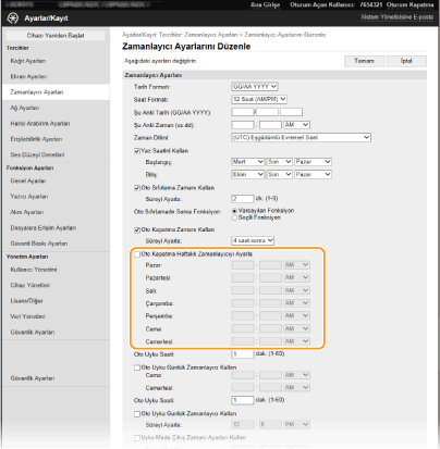 *Güç belirlenen zamanda otomatik olarak kapatılamıyorsa, bir dakikalık aralıklarla on kez yeniden deneme gerçekleştirilir. Güç on yeniden denemenin ardından da kapatılamıyorsa, otomatik kapatma o gün için olanaksız kabul edilir.