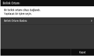 <Bell. Ort. Bağlndğnda Ekran> öğesi <Açık> olarak ayarlanırsa Ana Ekran görüntülenirken USB bellek cihazını taktığınızda mevcut eylemler görüntülenir. <Bell. Ort. Bağlndğnda Ekran>