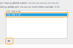 Bir IP adresi seçin ve [Sil] öğesine tıklayın.