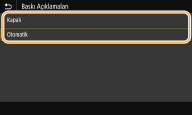 <Açık> olarak ayarlarsanız, belgeye bağlı olarak kenar alanlardaki baskı verisinin bir kısmı yazdırılmayabilir veya kağıt kısmen lekeli olabilir.