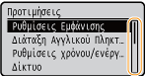 Μπορείτε να αλλάξετε ένα πλήθος ρυθμίσεων που σχετίζονται με την οθόνη, όπως τη γλώσσα για την οθόνη: <Ρυθμίσεις Εμφάνισης>