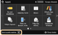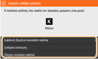 Εάν εμφανιστεί ένα μήνυμα κατά τη λήψη ενός I-Φαξ, η συσκευή δεν προχωρά στην εκτύπωση, ώστε να αποφευχθεί μία αχνή εκτύπωση. Για να συνεχίσετε να εκτυπώνετε ακόμη και όταν κοντεύει να εξαντληθεί ο γραφίτης, ορίστε τη ρύθμιση <Συνέχ. εκτύπ. Με χαμ. στάθμη>/<Συνέχεια εκτύπωσης. Με χαμηλή στάθμη> σε <On>. <Συνέχ. εκτύπ. Με χαμ. στάθμη>/<Συνέχεια εκτύπωσης. Με χαμηλή στάθμη>