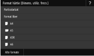 Dacă înregistraţi formatul de hârtie pe care îl utilizaţi frecvent pe butoanele <S1> la <S3>, puteţi să le apelaţi cu o singură atingere. Înregistrarea unui format de hârtie personalizat