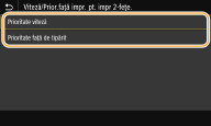 <Viteză/Prior. faţă imp 2-feţe>/<Viteză/Prior. faţă de tipărit pt. 2-feţe>