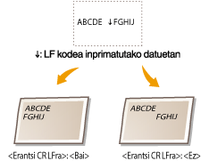 Ezarpenen lehentasunaInprimatzeko ezarpen bat inprimagailuaren kontrolatzailetik eta makinaren eragiketa-paneletik zehazten bada, inprimagailuaren kontrolatzaileko zehazpenak eragiketa-panelekoa baliogabetuko du. Eragiketa-paneleko zehazpena hainbat kasutan gauzatuko da, adibidez PS/PCL inprimatzea edo UNIX bidezko inprimatzea burutzean edo inprimagailuaren kontrolatzailerik onartzen ez duen beste sistema eragile bat erabiliz inprimatzerakoan.