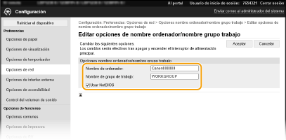 El nombre del grupo de trabajo es un nombre para agrupar varios ordenadores de forma que las funciones de red básicas, como el uso compartido de archivos, estén disponibles en una red Windows. Introduzca caracteres alfanuméricos en el nombre del grupo de trabajo al que pertenece el equipo.