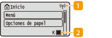 ![]() | Icono Wi-FiAparece cuando el equipo está conectado a una LAN inalámbrica. Cantidad restante de tóner en los cartuchosMuestra la cantidad de tóner restante en los cartuchos por fases. Esta información está oculta cuando la pantalla Inicio está activa. |