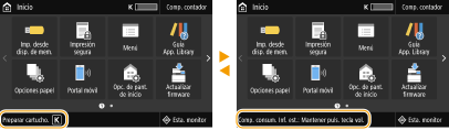 En la pantalla aparecen mensajes en determinadas situaciones como cuando se agota el papel o cuando el cartucho de tóner llega al final de su vida útil. Para obtener más información, consulte "Solución de problemas (FAQ)" en el sitio web del manual en línea.