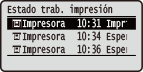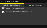 Muestra el estado actual del elemento seleccionado. La pantalla <Trabajo de impresión> se muestra a continuación como ejemplo.