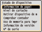 Extraer el dispositivo de memoria USB <Comprobar contador>Muestra el volumen total de impresiones.