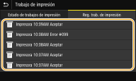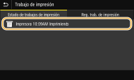 Si <Mostrar registro de trabajos> está establecido en <Off>, no podrá consultar los registros de impresión. <Mostrar registro de trabajos> |