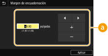 Corrija la posición de impresión para ajustar el margen de encuadernación que debe aplicarse al lado de encuadernación especificado en <Pos. encuadernación>.El valor "0,00" no tiene ningún efecto en el margen de encuadernación.