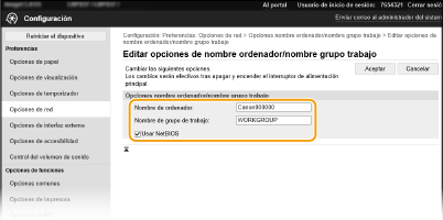 El nombre del grupo de trabajo es un nombre para agrupar varios ordenadores de forma que las funciones de red básicas, como el uso compartido de archivos, estén disponibles en una red Windows. Introduzca caracteres alfanuméricos en el nombre del grupo de trabajo al que pertenece el equipo.
