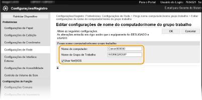 Marque a caixa de seleção ao usar o NetBIOS.