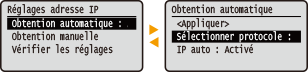 Vous pouvez modifier un grand nombre de réglages relatifs à l'affichage tels que la langue d'affichage. Pour en savoir plus à ce sujet : <Réglages d'affichage> Vous pouvez changer l'écran qui s'affiche automatiquement en cas d'inactivité de l'appareil pendant le laps de temps défini : <Fonction après réinitialisation auto.> Vous pouvez modifier un grand nombre de réglages relatifs à l'accessibilité tels que la vitesse de défilement. Pour en savoir plus à ce sujet : <Accessibilité> |
