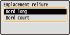 Spécifiez cette option pour placer la reliure sur le bord long du papier.