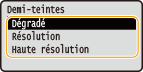 Vous pouvez changer le mode d'impression utilisé pour reproduire les demi-teintes (plage intermédiaire entre les zones claires et les zones foncées d'une image) pour obtenir une qualité d'image optimale.
