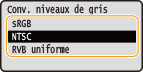 Imprime en noir et blanc : les couleurs R, V et B sont converties de façon homogène en niveaux de gris réguliers en n'utilisant que la luminosité comme référence.