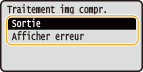 Sélectionnez <Sortie> ou <Afficher erreur>